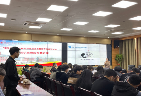 薛颖讲座的主题为“资助政策及校园防诈骗辨识”。介绍了国家资助政策,以近期发生的真实案例深入分析了诈骗表现背后的黑色产业链,呼吁大学生树立健康的消费理念,不被诈骗表象所迷惑,保护好个人财产安全及如何有效规避校园贷、网络诈骗、金融消费套路等消费陷阱。