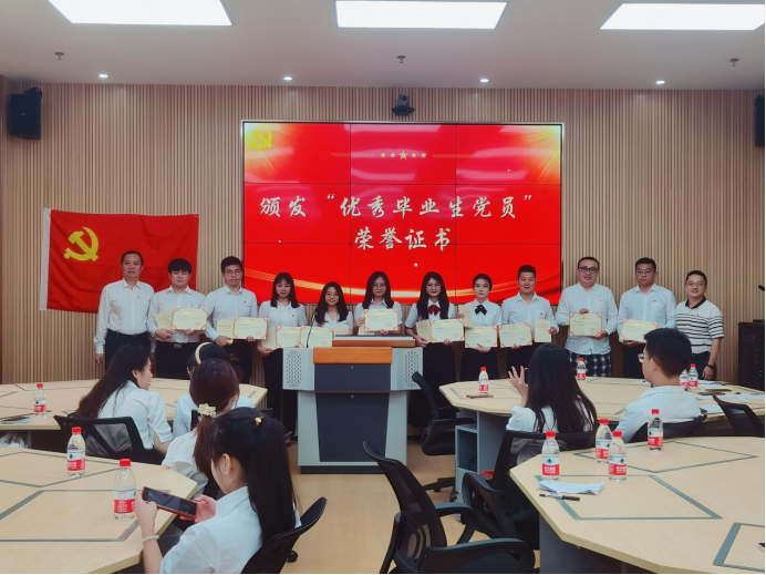 会上,李雪斌详细讲解了党员组织关系转接注意事项,他介绍了组织关系转接工作流程及注意事项,为毕业生党员解疑答惑,确保每一位党员熟悉和掌握组织关系转接及档案转接流程,并叮嘱大家要牢记党员身份,按时按要求结转组织关系和参加党支部会议和组织生活。学院为2023届优秀毕业生党员代表颁发荣誉证书,优秀毕业生党员代表纪丹格、林嘉荣、韦静、刘韬分别作“个人成长历程与感悟”主题分享,汇报交流各自在母校、学院和在思想、学习、工作、志愿服务等方面取得的成果,并号召所有党员同志不忘初心、牢记使命、坚定理想信念、踔厉奋发、勇毅前行。伍龙妙带领师生党员重温入党誓词。
