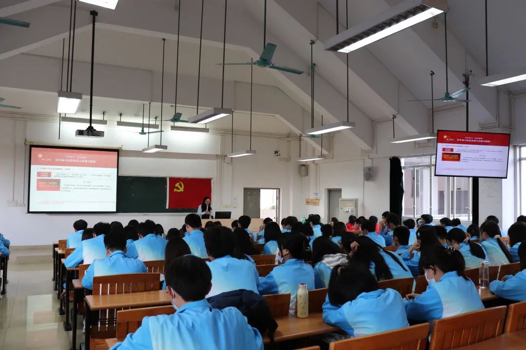 会议伊始,全体起立奏唱国歌。随后,郑海燕老师进行本次党课第二讲,从十九届六中全会中国共产党百年奋斗的伟大成就、全党历史经验和精神财富以及历史意义和复兴新程等三大方面进行授课。使在座的同学们更好的了解党的百年光辉历程,为思想上入党作基石。