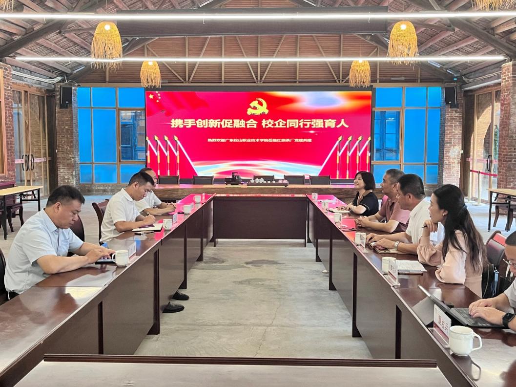 在调研座谈会上,双方就如何建立“园中校”和“校中园”进行了深入交流。科德公司宏德公司联合党支部书记、董事长张发武介绍了广德(英德)产业园整体规划以及产业园入驻企业情况,希望利用校方专业技术、人力资源优势,国企方政策研究、商业资源优势以及市场经营优势形成互补联动,校企双方共同探索合作机制赋能乡村振兴。谭春雨介绍了学校的基本情况,强调要以党建为引领,以产业需求为导向,将专业建在产业链上,加强校企深度合作,持续推进产教融合,探索“园中校”和“校中园”具有鲜明特色的产教融合模式,充分实现校企资源共享,共同发展,共同培养更多高质量应用型人才,实现学校、企业、社会、学生多方共赢。