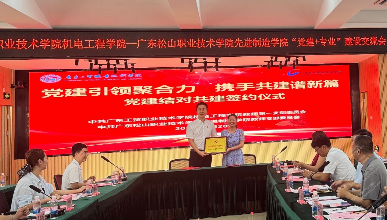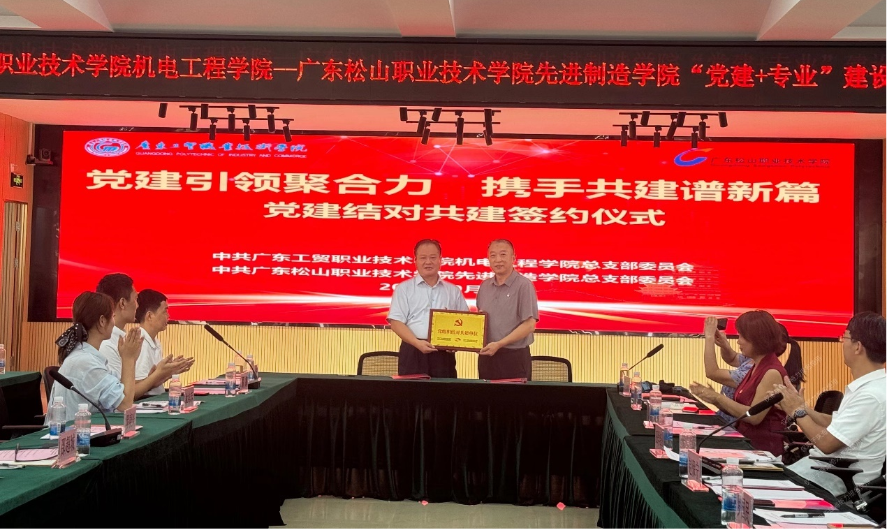结对共建聚合力,携手同行谱新篇。在党组织结对共建签约仪式上,中共广东工贸职业技术学院机电工程学院总支部委员会和中共广东松山职业技术学院先进制造学院总支部委员会达成结对共建,中共广东工贸职业技术学院机电工程学院教师第一支部委员会和中共广东松山职业技术学院先进制造学院教师支部委员会达成结对共建,这标志着两校两院之间的合作将更加紧密,共同推动党建工作和专业建设的协同发展。