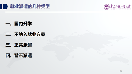 接着介绍了国内升学、不纳入就业方案、正常派遣和暂不派遣四种不同类型的就业派遣以及每种就业派遣类型的手续办理和系统操作说明。
