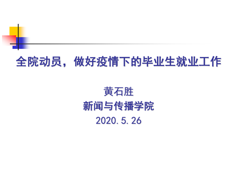 5月24日19:30,新闻与传播学院通过“腾讯会议”召开了2020届本科毕业生就业派遣政策宣讲和答疑、返校安排和就业动员会。会议由毕业班辅导员陈博菲主持,参会人员有党委副书记、播主与网媒学生党支部书记黄石胜和2016级全体学生,为学生带来了就业派遣政策宣讲和相关手续办理以及返校等毕业工作安排的详细讲解。