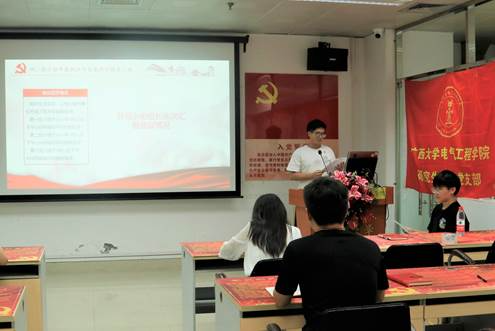 9月15日晚,广西大学电气研二支部(以下简称研二支部)在党员活动室110召开组织生活会。学院副院长刘辉莅临指导,研二支部全体党员参加会议。本次会议由研二支部副书记周雨歆主持。