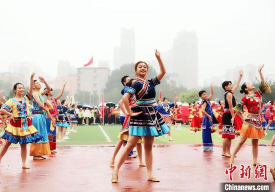 图为百人齐跳《幸福山歌》。张玥 摄