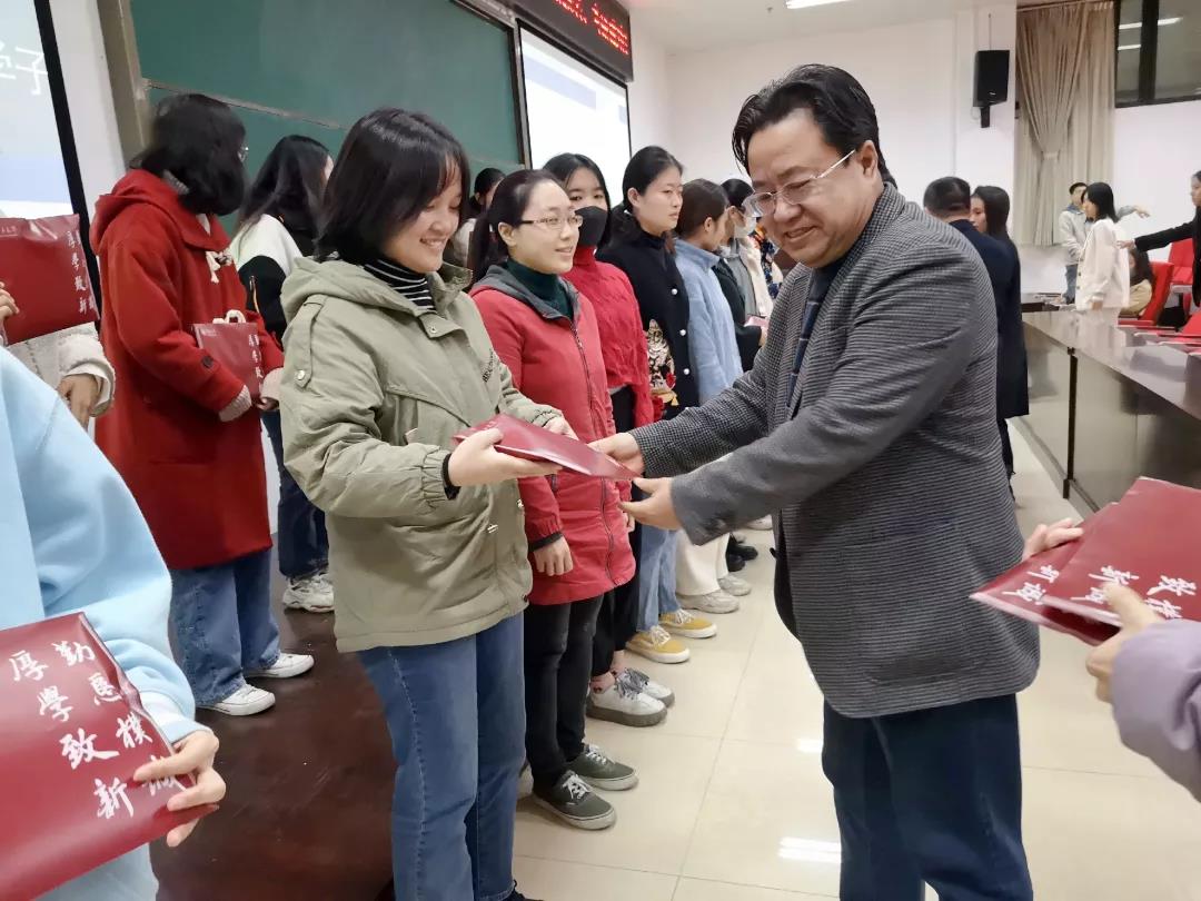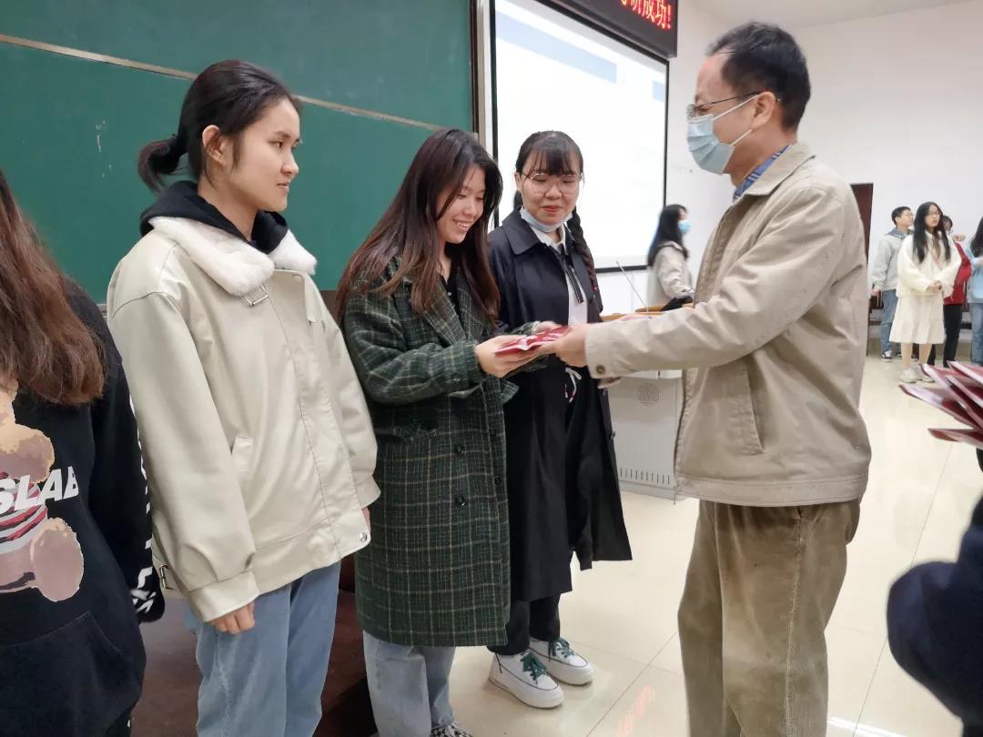 活动最后,老师们向考研学子一一发放了慰问礼包,并合影留念。