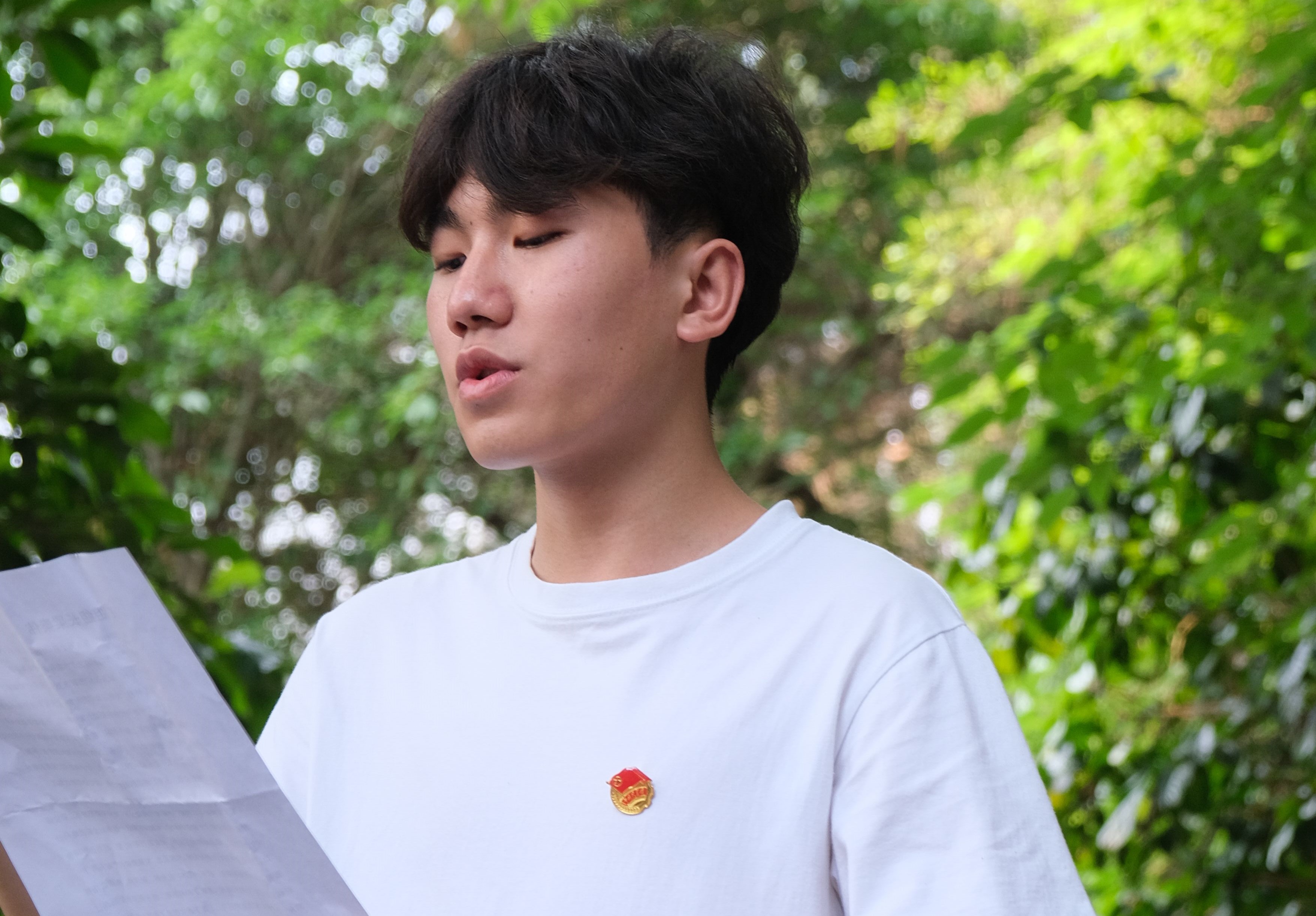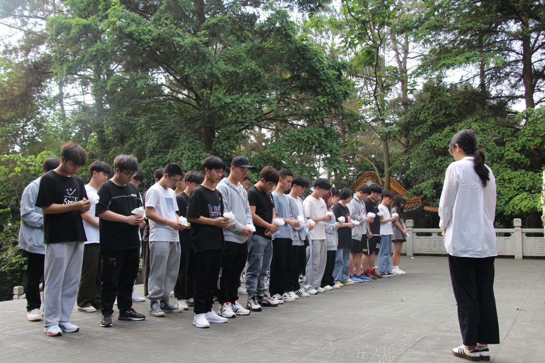 本次活动在班长许浪带领下在校门口进行了班级合影留念,随后,同学们乘坐地铁前往青秀山。来到了青秀山纪念碑,同学们围坐在一起,折小白花以用来献给抗日烈士。
