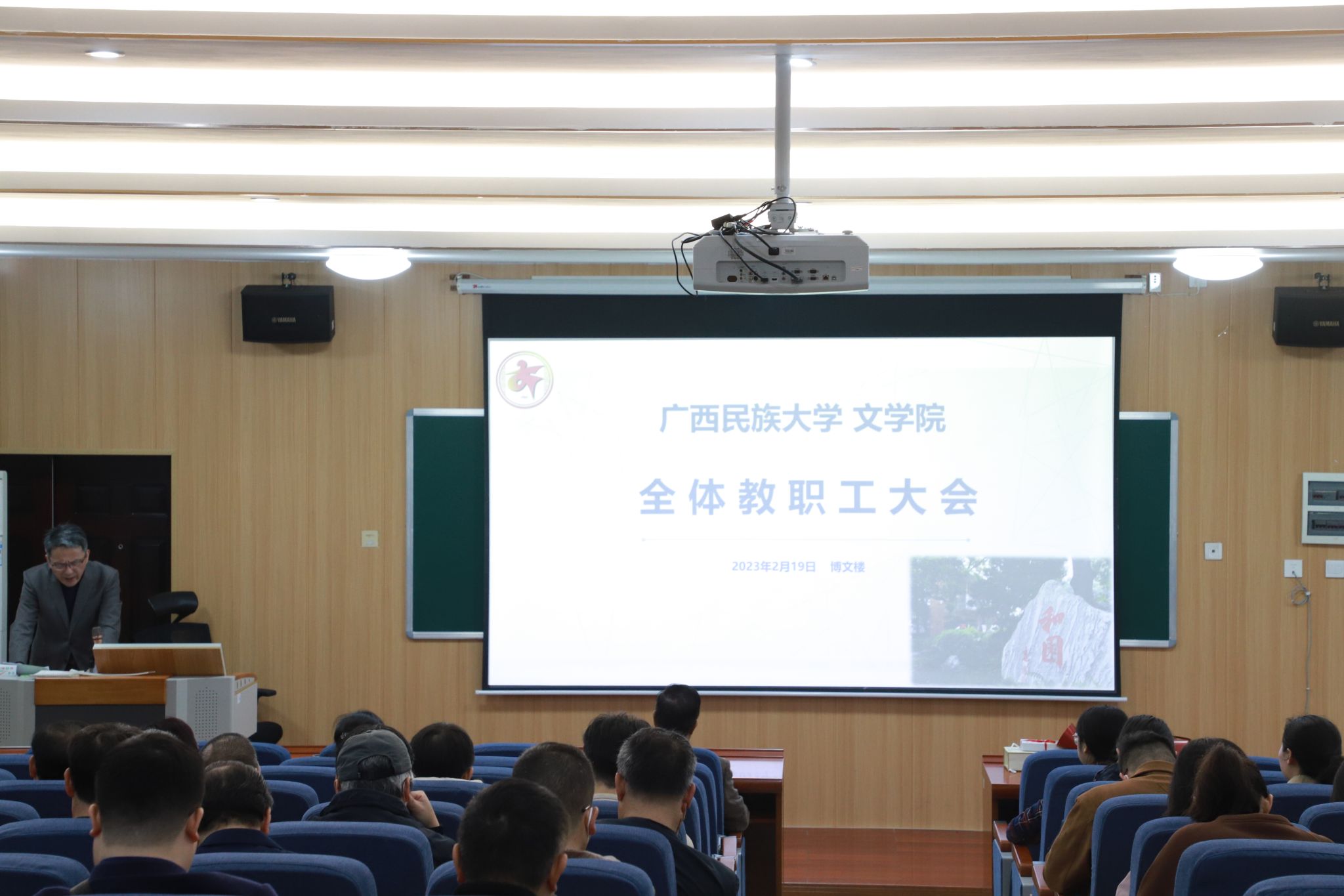 2月19日上午,文学院在博文楼一教一梯召开新学期教职工大会,会议由文学院党委书记陆喜培主持,文学院全体教职工参与。