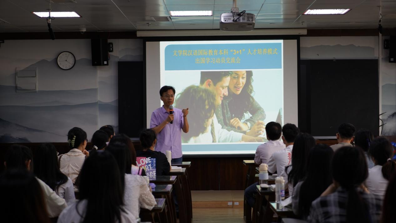 3月23日,文学院在文科综合实验实训大楼1106教室召开汉语国际教育本科“3+1”人才培养模式出国学习动员交流会,会议由2021级汉语国际教育专业班主任江雪主持,在职教工第一党支部党员教师何山燕、黄平文、任连明、文亚楠分别作为分管对外合作与交流业务工作副院长、汉语国际教育本科专业负责人、汉语国际教育教研室主任、本科教学秘书与会,与2021级汉语国际教育本科专业全体学生一起交流。