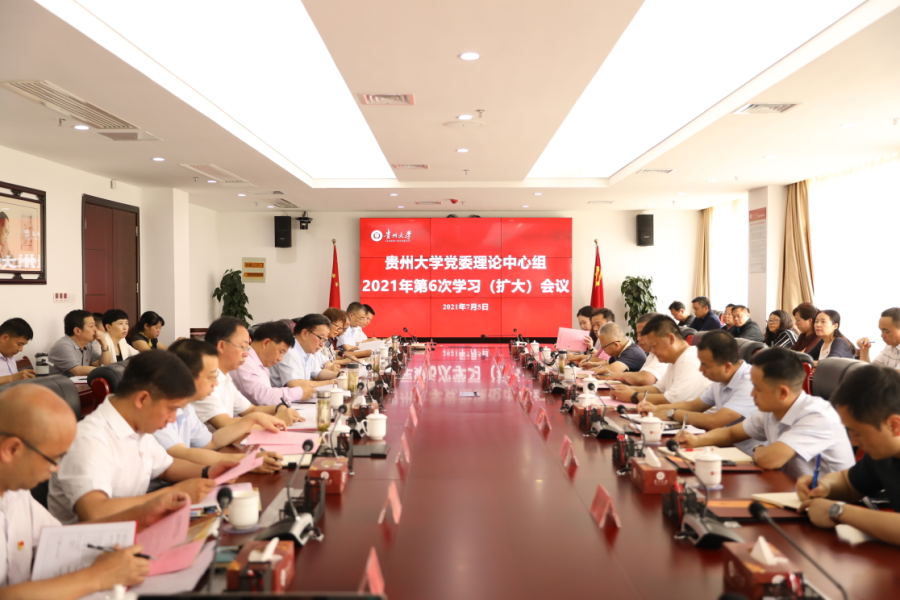 7月5日下午,贵州大学党委理论学习中心组2021年第6次学习(扩大)会议在西校区贤正楼1号楼311会议室举行。会议专题学习研讨习近平总书记在庆祝中国共产党成立100周年大会上的重要讲话精神。