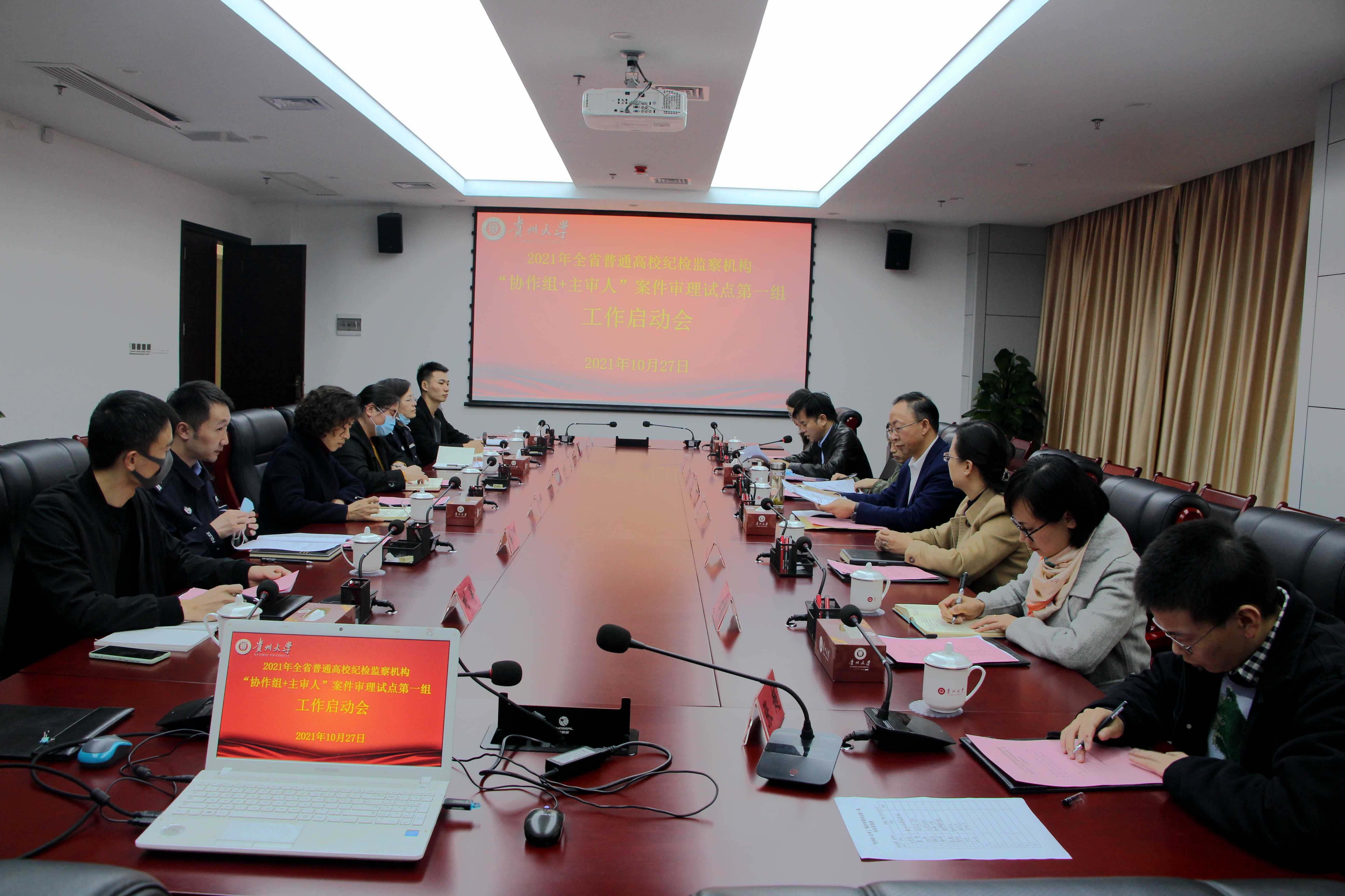 10月27日,2021年全省普通高校纪检监察机构“协作组+主审人”案件审理试点第一组工作启动会在西校区贤正楼102会议室召开。省纪委省监委派驻第十一纪检监察组审理室、贵州大学、贵州警察学院、贵州人民武装学院、贵州理工学院等单位相关人员参加会议。
