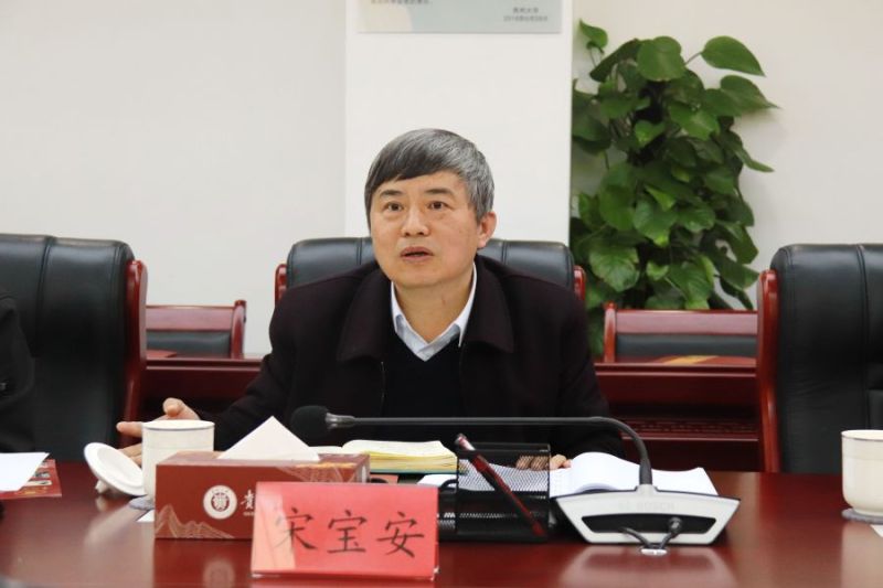 宋宝安讲话。他指出,学校各相关部门应设置工作专班,将校园茶文化深入到学生群体之中,让学生走近茶、了解茶,营造浓厚的茶文化氛围;各学院应围绕茶文化积极参与创新创作,以学研融合促产业化发展,鼓励学生创新开发相关茶产品,多学科交叉打造智慧茶园,服务地方产业升级,为乡村振兴贡献贵大智慧力量。