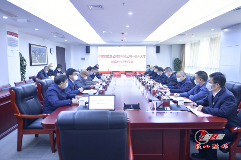 贵大新闻网讯 (文字/康瑞 摄影/冯月成)12月13日,中国烟草总公司贵州省公司-贵州大学战略合作签约仪式在西校区贤正楼1号楼202会议室举行。贵州省烟草专卖局局长、中国烟草总公司贵州省公司总经理高体仁,副总经理沈宏、周华,校党委书记李建军,副校长陈祥盛、吴攀出席签约仪式。省烟草专卖局和我校相关部门负责人参加。