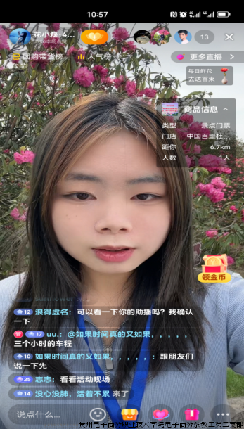 产教联动直播赋能体旅融合,服务区域经济高质量发展。2025年针对企业发展痛点难点,开发贵州省毕节市百里杜鹃体旅项目,组织专业教师及优秀学生代表前往百里杜鹃开展直播宣传,助力百里杜鹃体育旅游产业迈向高质量发展的新台阶。
