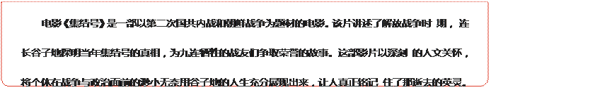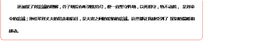 《集结号》这部电影,一开始,在我心中的印象,除了战火连天,就是血肉横飞。战争的阴霾与 悲壮始终贯穿全片,我是不敢看的。随着剧情的推进,看到谷子地一开始就知道这多半是一场有 去无回的战争,所以他在接到命令的时候狠狠的吸着烟卷,并告诉号手:“我从现在就等着号声 了〞时,我不禁思考,这样的场面,或者说这样的结局,我能承受吗,我有这样视死如归的决 心,有虽千万人吾往矣的魄力吗?我是害怕的。