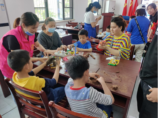 为了弘扬传统文化,激发社区居民爱党爱国情怀,5月29日张茜带领艺术设计系“艺馨”志愿服务队学生志愿者在建党百年之际,走进板桥社区,为板桥社区儿童开展“童心向党 巧手筑梦”陶艺制作活动。