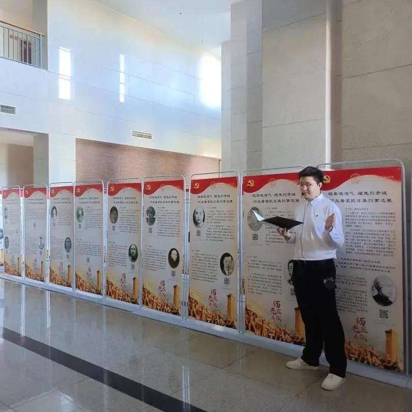 宣讲团成员任文静讲述了马本斋烈士的故事,马本斋烈士带领回族同胞们奋勇杀敌,给敌人造成重创,敌人抓走了他的母亲为人质,他母亲以死明志叮嘱他永不放弃奋斗,这一门英烈最终壮烈牺牲,他们为历史所铭记,为人民所敬仰。这里的展板还有上百位烈士,他们有的留下了照片,有的只留下了寥寥几句话,但不变的是他们令人动容的那份家国情怀。