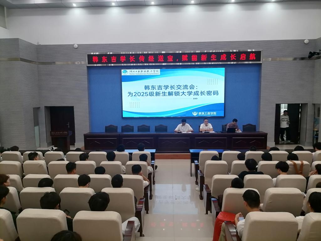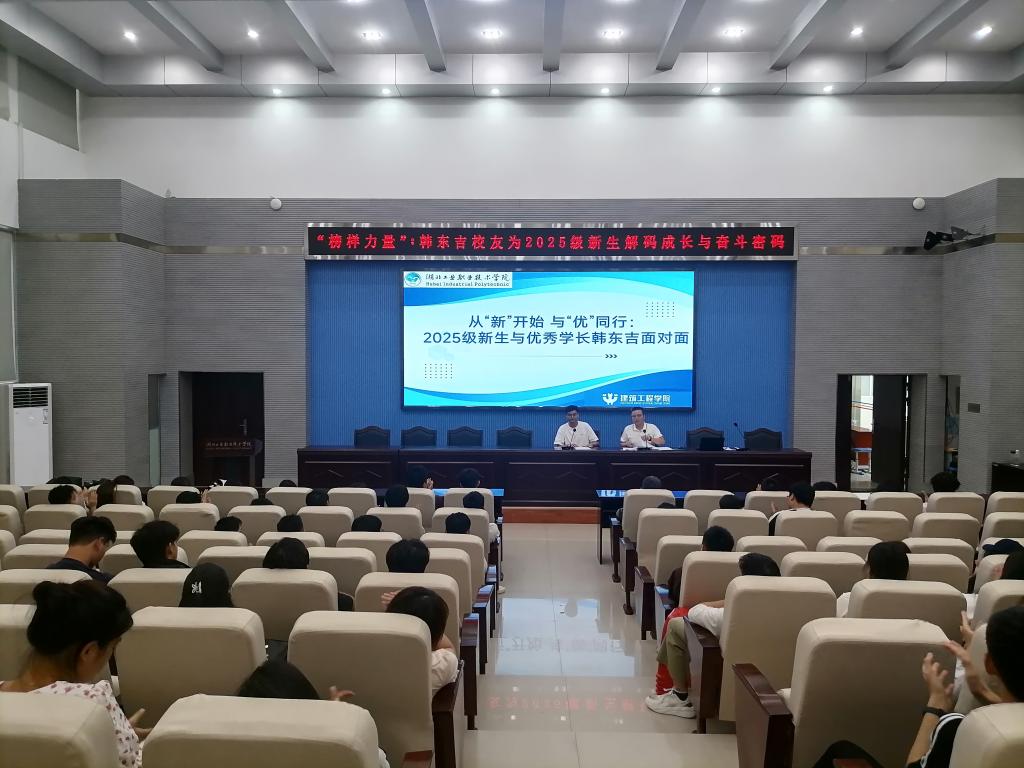 9月8日下午,科技楼学术报告厅内座无虚席,一场以“榜样引路、共话成长”为主题的优秀校友交流活动在此顺利举行。本次活动由学院党总支书记王厚兵主持,2015级建筑工程管理专业校友韩东吉受邀返校,与2025级新生面对面交流,分享求学与职业发展经验。
