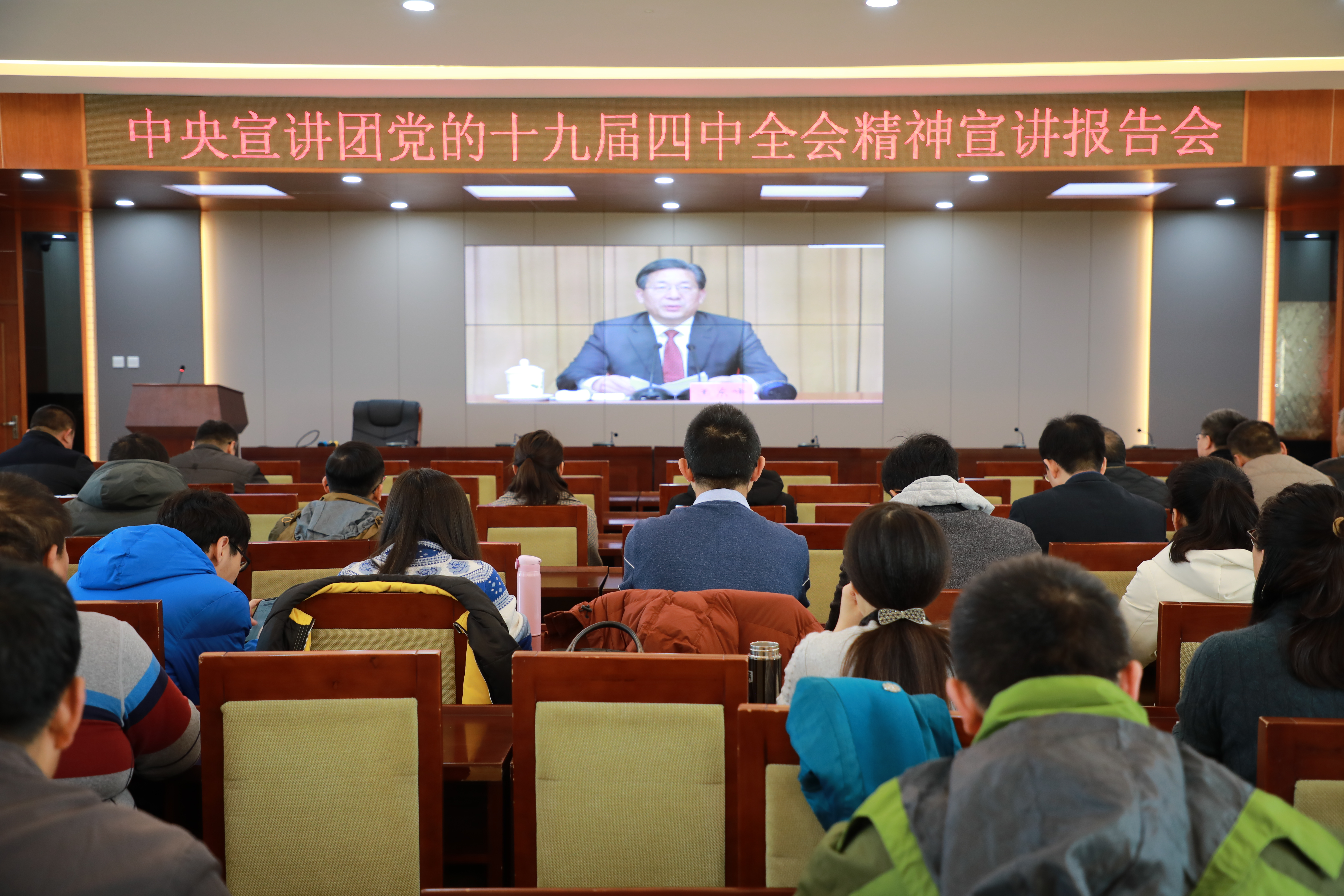 三个半小时的宣讲报告聚焦重点和关键,内涵丰富、系统全面,深入浅出、鲜活生动、论述精辟,学院收看宣讲报告会的党员同志深受启迪,倍受教育。学院要求,各级党组织要以收看中央宣讲团宣讲报告会为契机,切实把学习宣传贯彻党的十九届四中全会精神作为增强“四个意识”、坚定“四个自信”、做到“两个维护”的实际行动和现实检验;要结合“不忘初心、牢记使命”主题教育,坚持精心组织,广泛宣传宣讲,在全院持续兴起学习宣传贯彻党的十九届四中全会精神热潮;要加强学习研讨,深刻把握党的十九届四中全会的重大意义,切实增强贯彻落实全会精神的思想和行动自觉,确保学习党的十九届四中全会精神取得实效。