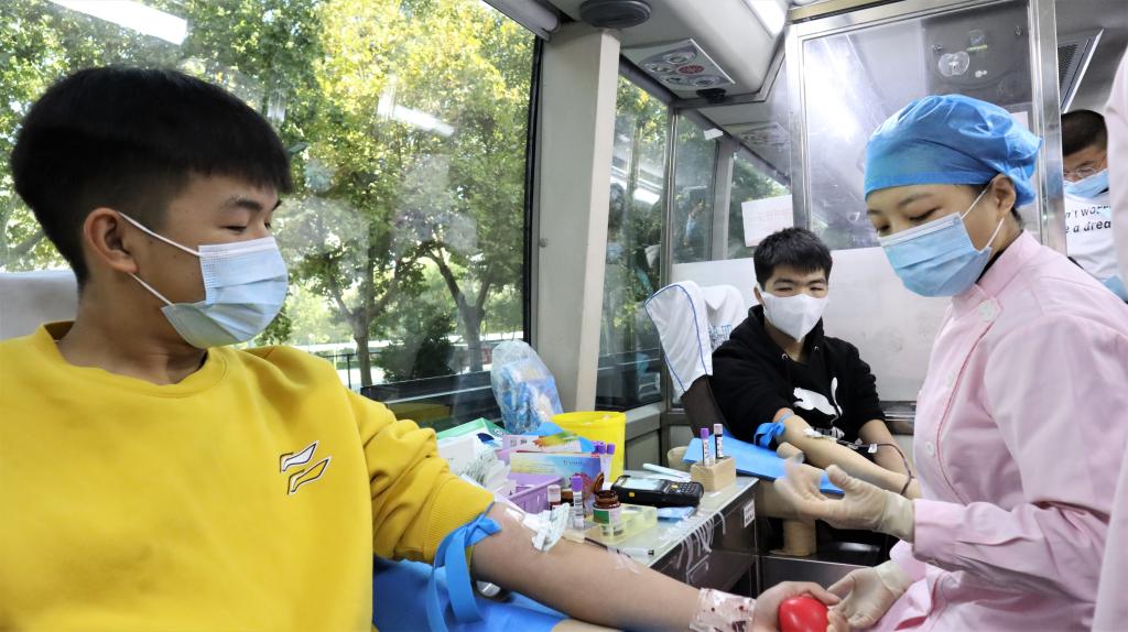 2021年10月21日,我校在南校区开展以“献血献爱心、血浓情更浓”为主题的无偿献血活动。活动前期我校青年志愿者协会通过发放宣传手册、粘贴海报等多种形式的政策宣传,吸引了广大师生的踊跃参与,共计有1000多人参加献血,自愿为社会奉献一份爱心。