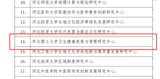 2022年3月10日,在党建引领下华北理工大学卫生健康政策与管理研究中心顺利通过第二批河北省高等学校人文社会科学重点研究基地评审认定,成为此批评审中我校唯一通过的人文社会科学重点基地,彰显出我院在党建融合方面取得的出色效果,也表现出党的领导对高校育人事业发展的强大助推作用。