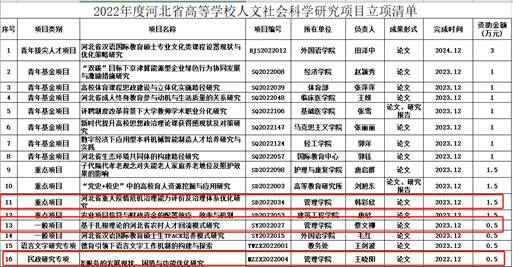 时代的华章,总在接续奋斗里书写。,华北理工大学管理学院在深耕党的建设、支部发展的基础上,再次实现学术、科研的发展提升,荣获2022年河北省高等学校人文社会科学研究项目立项,囊括重点项目、一般项目等多个类别。
