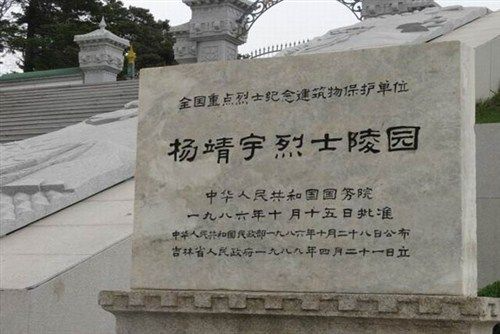 杨靖宇烈士陵园,位于吉林省通化市浑江东岸靖宇山,建于1954年,占地2万平方米,是伟大的抗日英雄杨靖宇将军的英灵安息地。园内松柏苍翠,四季常青,陵园由5座琉璃瓦民族式建筑物组成,正面主体建筑为灵堂和墓室,两侧4个偏殿为陈列室。杨靖宇陵园先后被国家、省、市命名为“全国中小学爱国主义教育基地”、“全国百家爱国主义教育基地”、被中宣部、国家民政部、人事部和文化部授予“全国爱国主义教育示范基地”、“全国国防教育示范基地”、“吉林省中共党史教育基地”、被国家评为4A级旅游景区并列为全国“红色旅游”经典景区。2016年12月,入选《全国红色旅游景点景区名录》。