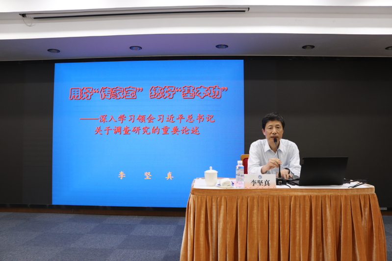 会议特邀市教卫工作党委二级巡视员、直属机关党委原副书记李坚真作题为“用好‘传家宝’ 练好‘基本功’——深入学习领会习近平总书记关于调查研究的重要论述”的专题辅导报告。李坚真在报告中指出,调查研究是党的传家宝,是做好工作的基本功。他通过详细分析习近平总书记在福建开展的林改经验、浙江调研的工作实际,强调了辩证思维是习近平总书记调查研究方法论的一个显著特征,“我们要掌握辩证思维,保持思想定力,真正掌握规律,妥善处理各种重大关系”。接着,他通过介绍习近平总书记在正定、宁德以及党的十八大后中央政治局制定的相关规定,详细阐述调查研究是转变作风和改善工作的重要方法,并介绍了调查研究“传家宝”的八种打开方式,包括聚焦问题式、解剖麻雀式、走村入户式等。他指出,调查研究是实现高质量发展的时代需要。对广大党员、干部而言,要真正扑下身子、放下架子,把调查研究和指导检查工作区别开来,发现问题、直面问题、解决问题。他号召年轻干部自觉练好调查研究这个基本功,走好党的群众路线,提升干事创业本领。