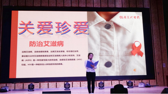 为大力宣传党和国家预防艾滋病的重要政策和措施,普及预防艾滋病的知识,使广大学生积极参与到预防艾滋病的行列中,不断提高其对预防艾滋病工作重要性的认识,哈密职业技术学院于11月9日下午开展高校防艾基金项目系列活动,学院副院长沙热木·吾斯曼、哈密市疾控中心赵娜主任、宣传部、思政部、学生处、团委、防艾小组指导老师以及全院500名学生代表在博阅楼报告厅参加此次活动。