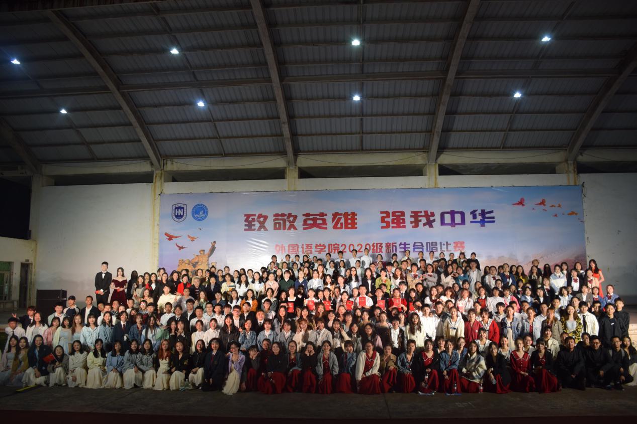 为纪念抗美援朝战争七十周年和“一二·九”运动八十五周年,12月6日晚,海南大学外国语学院在城西校区举办“致敬英雄 强我中华”新生合唱比赛。学院党委副书记刘雨芙(主持党委工作)、学院党委副书记李洋、文科基础教学部副主任陈楠昕、城西校区团工委指导老师王霖和旅游学院辅导员石青纯出席,学院全体辅导员担任比赛评委,学院全体2020级新生以团支部为单位参加比赛。