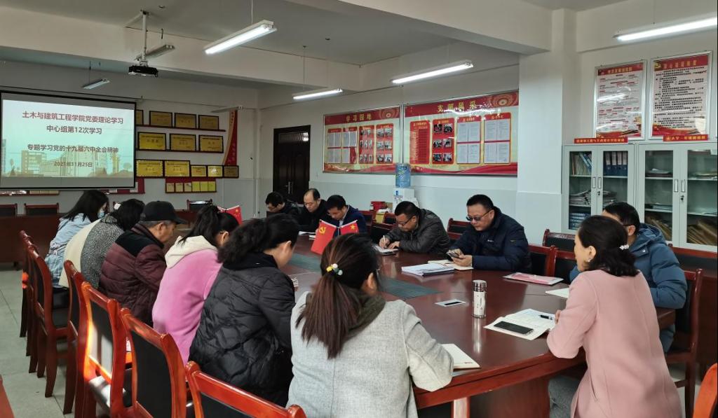 11月25日上午,学院在6201会议室举行学院党委理论学习中心组第十二次集中学习,专题学习党的十九届六中全会精神。党委理论学习中心组全体成员、各党支部书记、各教研室、实验室、办公室负责人参加,院党委书记黄卫华主持学习会。