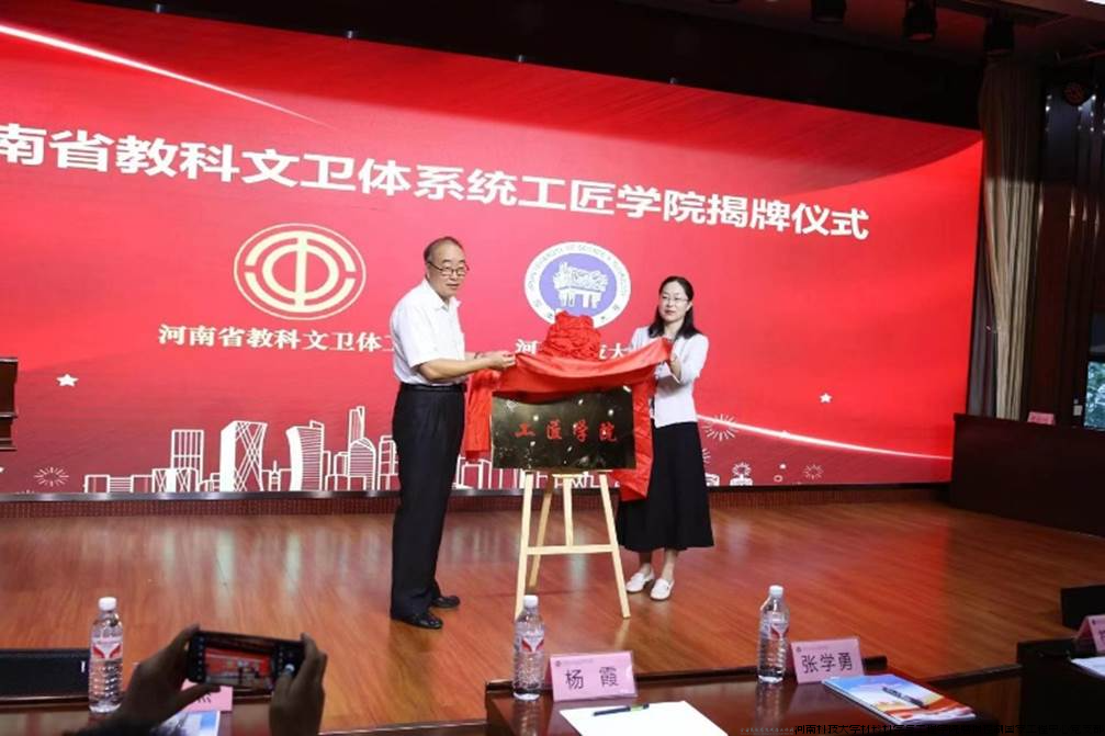 河南省总工会二级巡视员符明轩、省教科文卫体工会主席张学勇、省科技厅机关党委副书记马骥,河南科技大学党委副书记、工会主席杨霞、副校长穆云超出席签约揭牌仪式,仪式由张学勇主持。