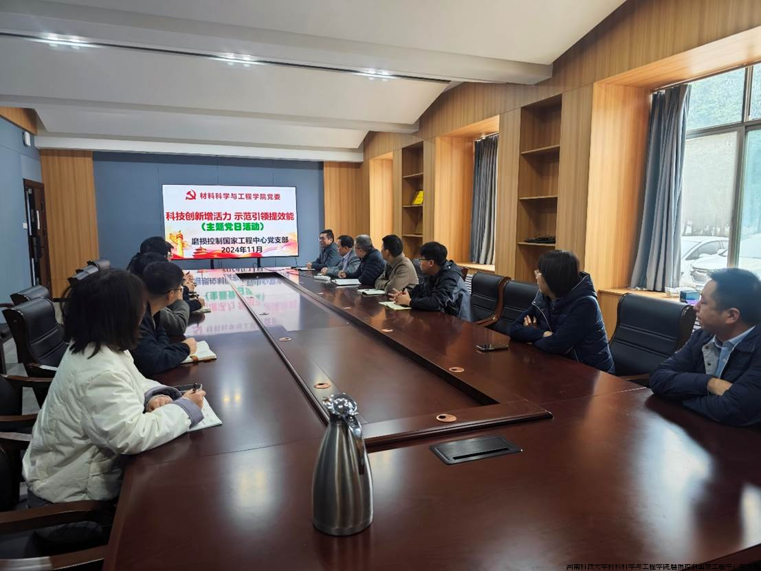 2024年11月21日,磨损控制国家工程中心党支部举行“科技创新增活力,示范引领提效能” 主题党日活动,继续深入学习贯彻党的二十届三中全会精神。活动由党支部书记周玉成主持。