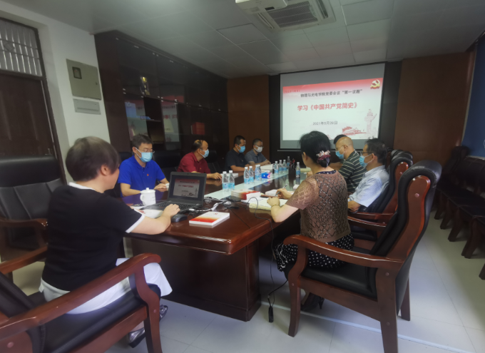 根据学院党委《关于印发<物理与光电学院开展开展党史学习教育实施方案>的通知》(物理党委〔2021〕2号),5月28日上午,华南理工大学物理与光电学院举行学院党委会议“第一议题”——《中国共产党简史》(以下简称《简史》)和《宗教事务条例》专题学习会。学习会由学院党委负责人张淑娟主持,学院党委委员、党员领导干部、组织员、教工党支部书记参加了学习会。