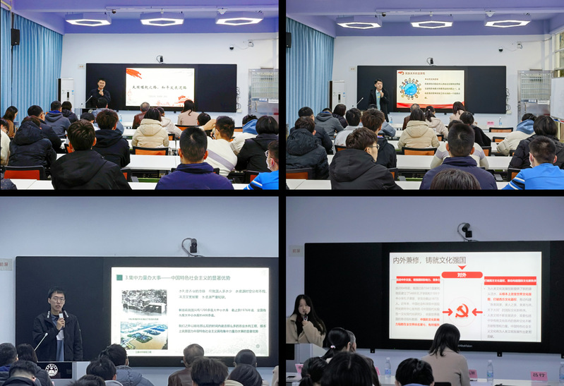 其次,来自马克思主义学院和机械与汽车工程学院的四位学生党员白宇、张钰奇、陈锴杰、焦珊进行读书分享(其中白宇、张钰奇、焦珊为学校“习语心传”学生党员宣讲团成员)。他们分别从我国的发展道路、民族政策、“三农”工作、文化建设四个具体领域着手,用理论联系实际,生动地阐释了中国特色社会主义具体“好”在哪里。走和平发展道路的明智选择、各民族共同繁荣发展的和谐景象、始终践行人民至上理念的制度设计、文化软实力不断提升的建设成就……他们运用实际事例讲述中国特色社会主义为什么“好”的故事,平实的话语、充实的论据,无不让人信服。