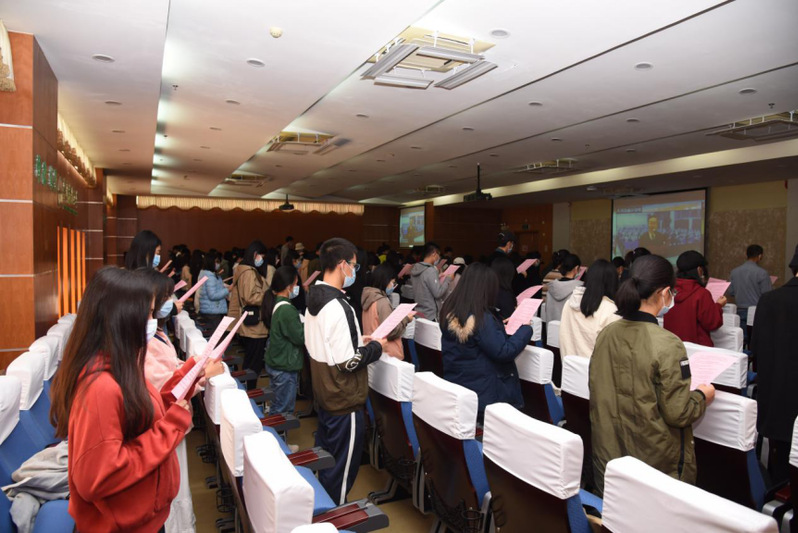 12月4日上午,人文与法学学院组织师生代表近200人开展了“学宪法,讲宪法”主题教育活动。师生一起观看了教育部“宪法晨读”直播视频,全体成员跟读宪法部分条款,并观摩了第五届全国学生“学宪法,讲宪法”活动全国总决赛颁奖仪式。
