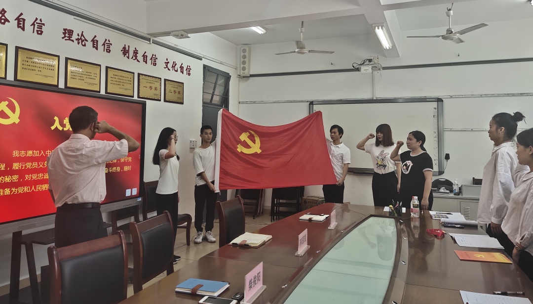首先,全体起立奏唱国歌。接着,新党员进行入党宣誓、老党员重温入党誓词。司佳玥、赵艺璇、马昕妍作为党员代表先后发言。