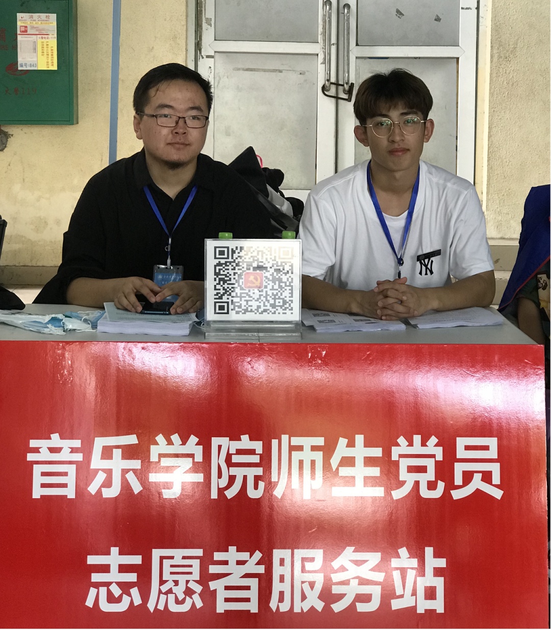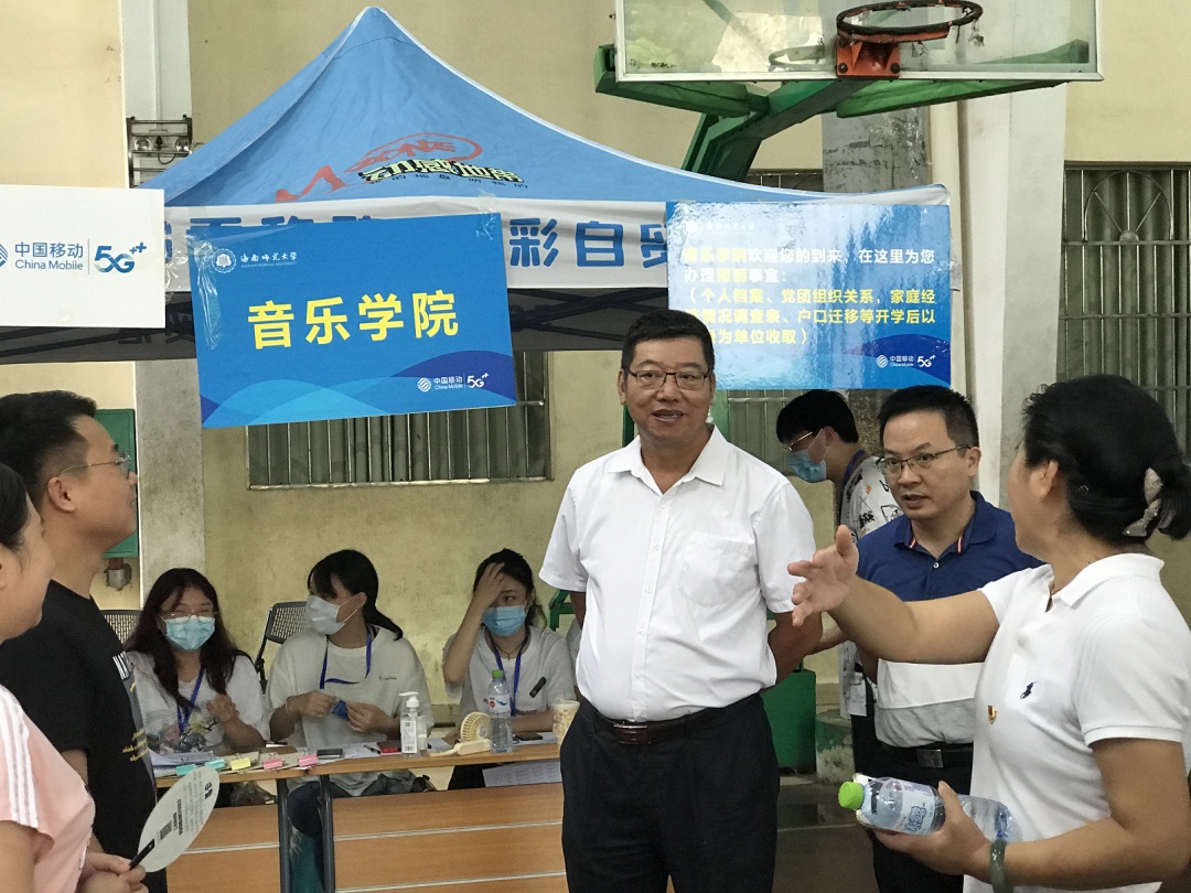 林强校长到音乐学院师生党员志愿者服务站指导迎新接待工作