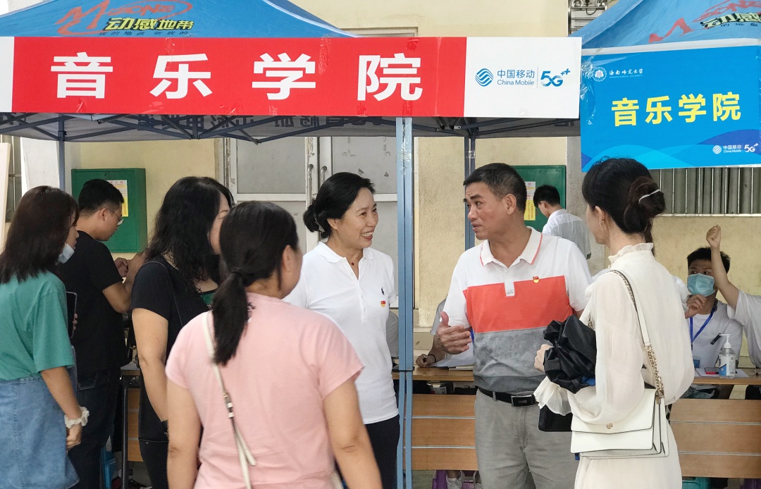 为积极配合学校新生入学接待工作,引导广大师生党员充分发挥先锋模范作用,在志愿服务中践行初心使命、体现责任担当, 9月20日,音乐学院教工党支部、学生党支部在黄华康体育馆新生报到点设立师生党员志愿者服务站,服务新生入学报到。林强校长一行到服务站走访,并指导我院迎新工作。