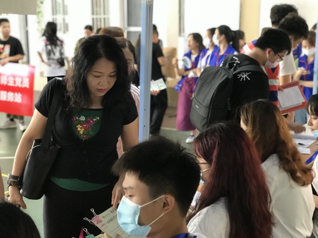 早上7:00,师生党员到场后,统一佩戴好党徽,引导新生有序报到,耐心解答新生和家长询问,介绍学校、学院新生入学安排,并提醒新生做好学习、生活等各方面开学准备。