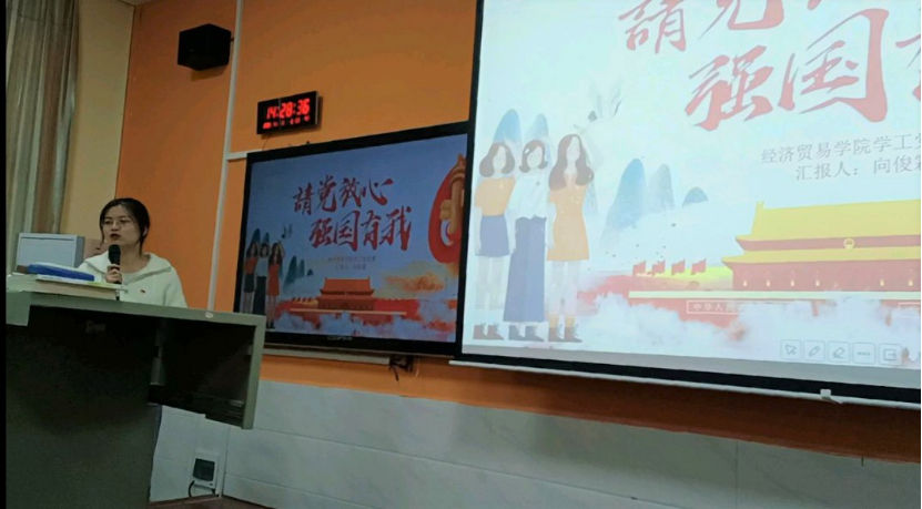 (通讯员 王世超)为使广大青年学子深入了解党的艰苦卓绝的奋斗历程,肩负起时代赋予的使命,11月2日下午14:30经济贸易学院学工党支部在二教101教室开展“请党放心·强国有我”主题党日活动。本次活动由预备党员向俊霖同志主持。