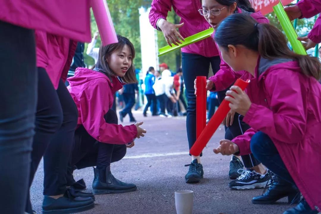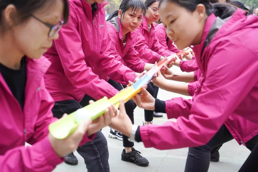 珠行千里看似十分简单,不过要想使高尔夫球顺利的传递下去,还真的是考验老师们之间的团结与配合啊!