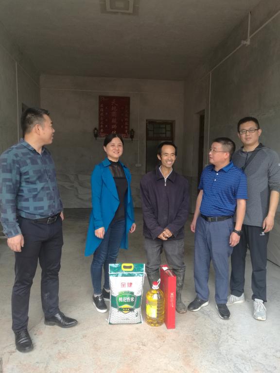在大和村综合服务中心,刘志成等一行与谭桥街道纪工委书记、办点领导陈三普,村支两委及驻村工作队简单会面后,立即在学校驻村工作队员,马体实训党支部方达泉副部长的安排下,深入结对帮扶的15个贫困户家中进行节前慰问走访。他们为每个贫困户送上大米、食用油、月饼等慰问物资,带去学校的关怀和温暖,并送上节日的祝福。