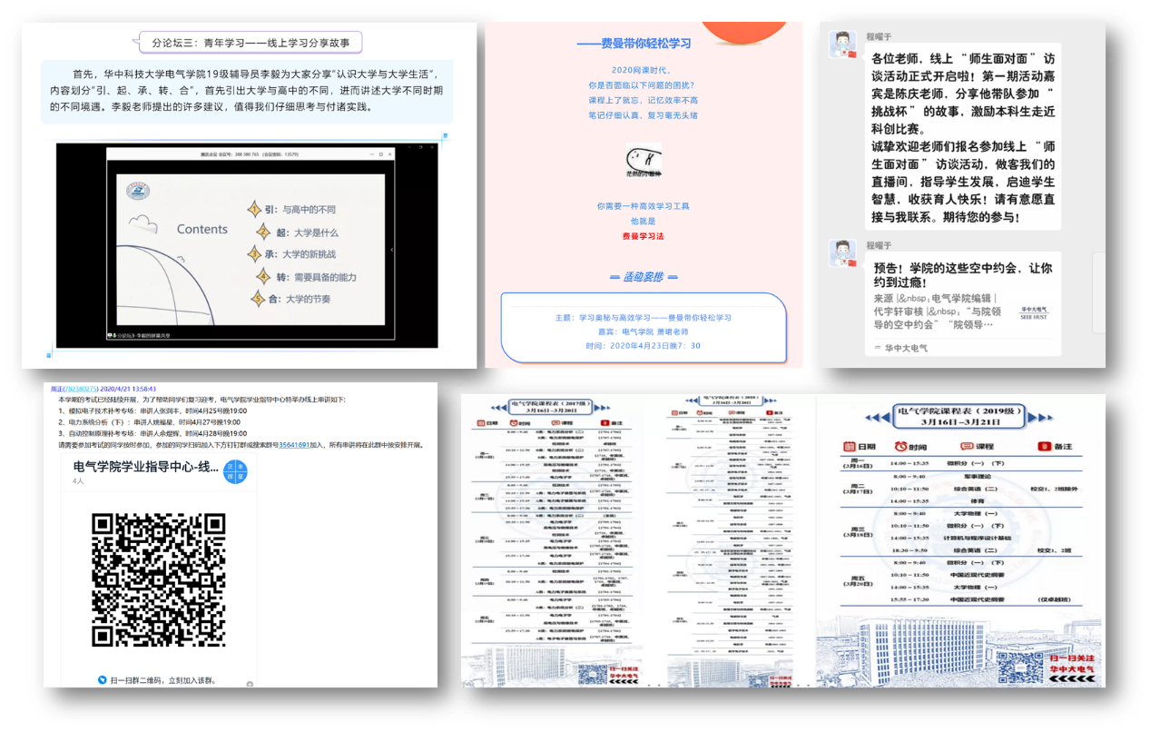 “学习有困惑?发展很迷茫?大创项目没有思路?——线上‘师生面对面’帮助你拓展新的思路和视野!”辅导员程曜于连线学院高水平专业教师,为师生之间的顺畅交流搭建桥梁。虽未正式开学返校,但电气学院辅导员们依然扮演好同学们学业守护者的角色,继续拓展线上教育覆盖面,了解学生学业上的常见困扰和普遍问题,从学习技巧、专业引导、生涯规划、学业指导等方面,开展了丰富多彩的线上学风建设活动,保障同学们“宅”家学习的效果。