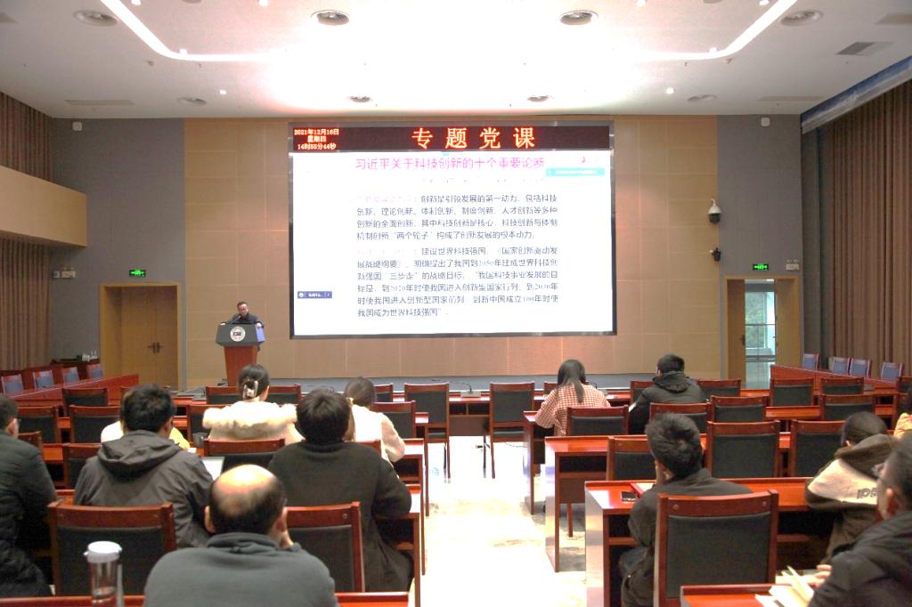12月16日下午,引力中心党支部书记罗志才以“习近平科技创新思想”为主题,通过线上与线下相结合的方式为联系点党支部讲授党课,引力中心博后党支部、引力中心研究生第一党支部、第二党支部70余名党员参加学习。