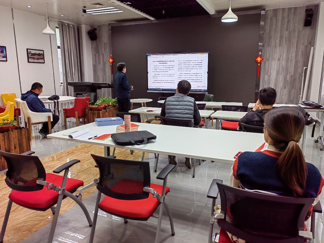 最后,陈大松老师带领全体党员共同学习了中共中央办公厅印发《关于在全党大兴调查研究的工作方案》。该方案从重要意义、总体要求、调研内容、方法步骤、工作要求等五个方面进行了详细的阐述,具有很强的指导意义。习近平总书记强调指出,调查研究是谋事之基、成事之道,没有调查就没有发言权,没有调查就没有决策权;正确的决策离不开调查研究,正确的贯彻落实同样也离不开调查研究;调查研究是获得真知灼见的源头活水,是做好工作的基本功;要在全党大兴调查研究之风。针对相关领域或工作中最突出的难点问题进行专项调研。要坚持因地制宜,综合运用座谈访谈、随机走访、问卷调查、专家调查、抽样调查、统计分析等方式,充分运用互联网、大数据等现代信息技术开展调查研究,找到破解难题的办法和路径。