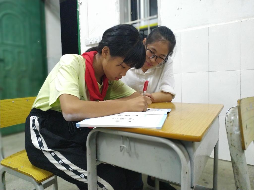 2019年10月9日,教育与音乐学院学生第一党支部在外实习党员开展辅导实习班级的学困生、帮助低年级出黑板报等党员志愿活动。