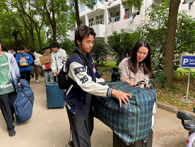 学院还为学生提供“爱心接送服务”,租用电动三轮车、发放包装袋、胶带等,保障搬迁工作安全、有序进行。
