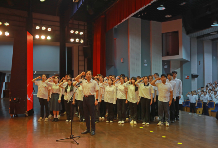 表彰大会上,校党委书记王振洪带领新发展党员进行入党宣誓,全体党员重温入党誓词。铮铮誓言表达了全体党员坚定不移听党话、矢志不渝跟党走的信心和决心,时刻提醒着全体党员初心如磐、使命在肩。