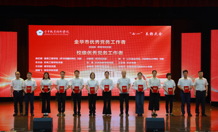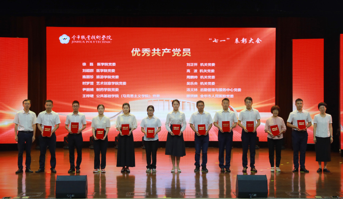 为迎接中国共产党成立103周年,激励广大师生党员奋发有为、砥砺前行,不断增强基层党组织凝聚力和战斗力,6月26日上午,金职院召开“七一”表彰大会暨党纪学习教育专题党课。学校领导班子成员,全校中层干部,各二级党委(直属支部)书记、组织员,党支部书记、支部委员,学生党员代表,“光荣在党50年”老同志和相关受表彰人员参加。